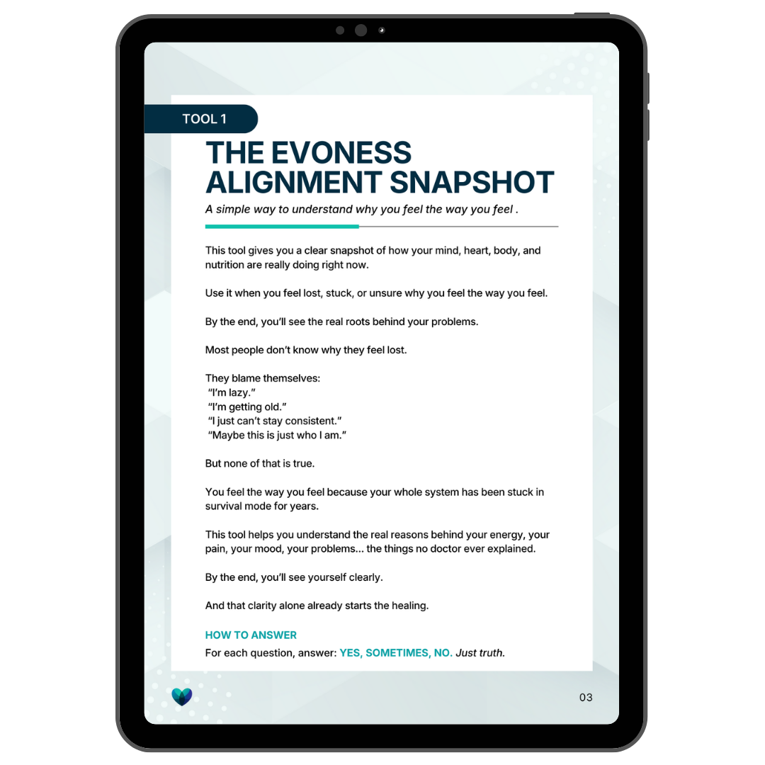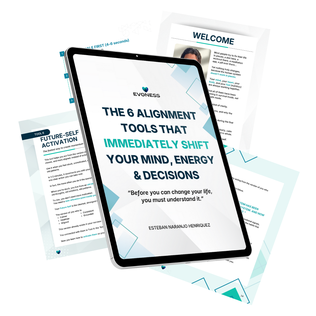 These are the same tools Evoness uses with private clients to stabilize their mind, regulate their nervous system, and snap out of looping thoughts and stalled progress. No guessing. No “mindset fluff.” Just clear steps that work.