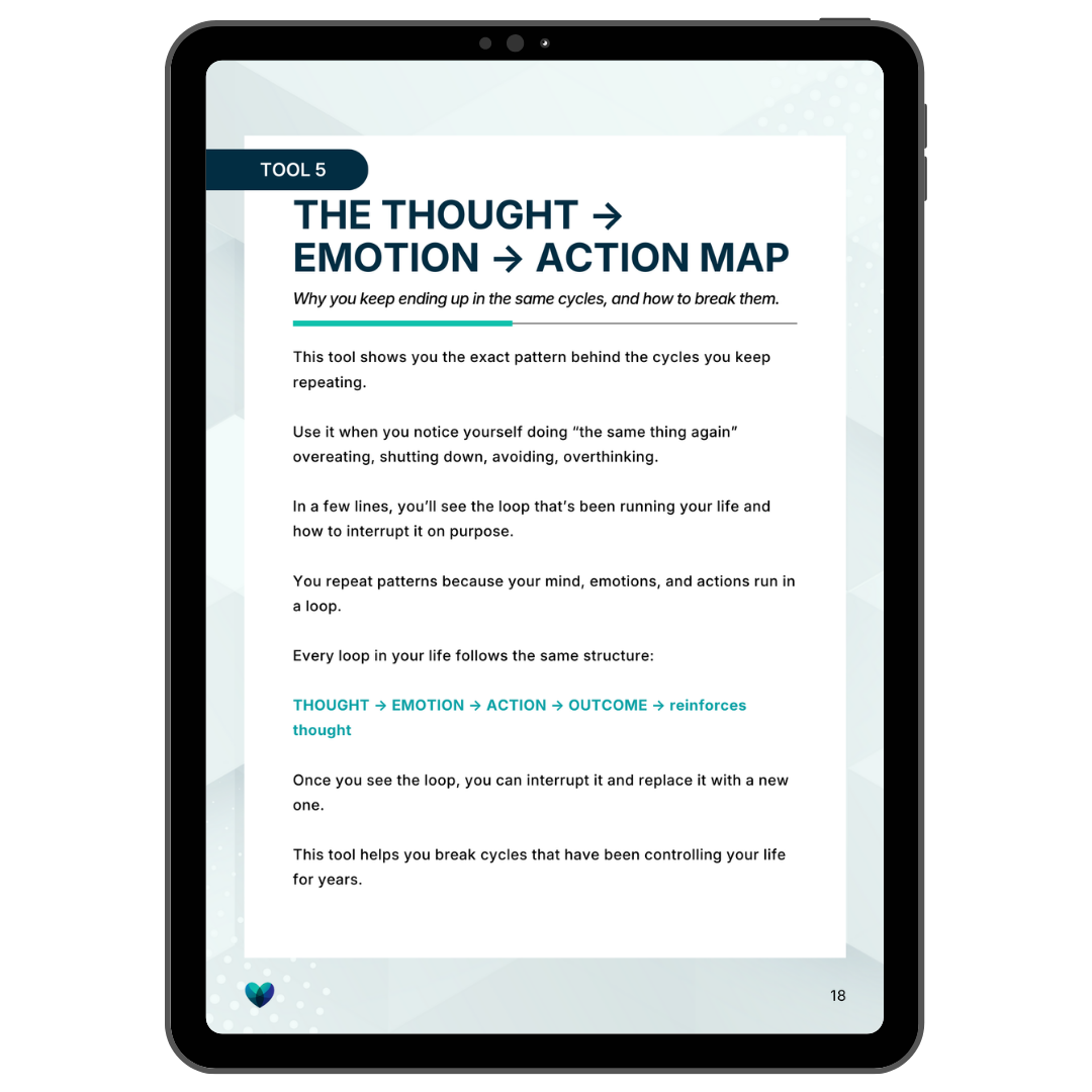 You’ll finally see how one thought triggers an emotion… which triggers an action… which creates your outcomes. Once you see this, you can interrupt any pattern.